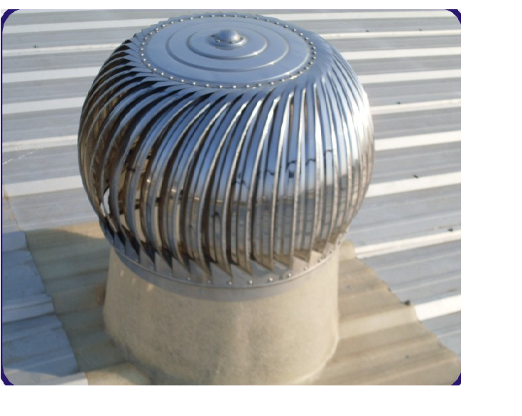 We supply the roof mounted turbo ventilators. it runs without motors, this is the reason it is called natural extractors also, as it rotates without any power and it has zero electricity consumption. No motor or panel is required for this. it is generally attached with frp based and is placed over the work shop roof. workshopd having higher temperature generates temerature or density ingradient with surrounding ambient temperature, which propells the ventilator to rotate and during this process it extracts air from inside the work shop and throw out to atmosphere.
